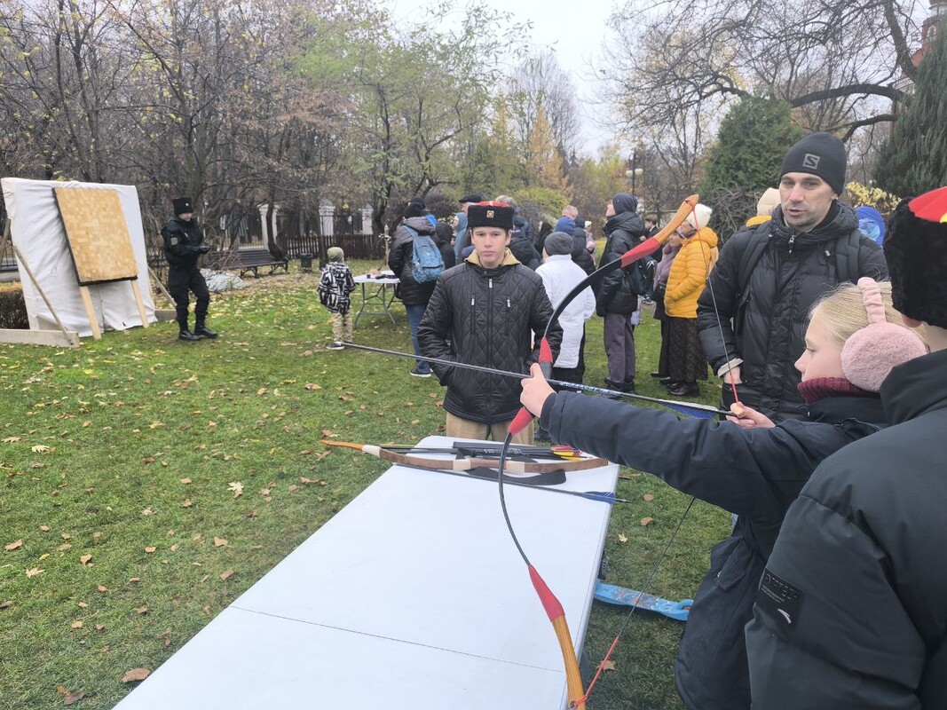 Казаки и казачата Головинской казачьей сотни Представительства СКВРиЗ в ЦФО организовали прекрасные выступления – мастер -классы по метанию ножей, стрельбе из лука, фланкировке, в которых могли участвовать и участвовали все желающие.