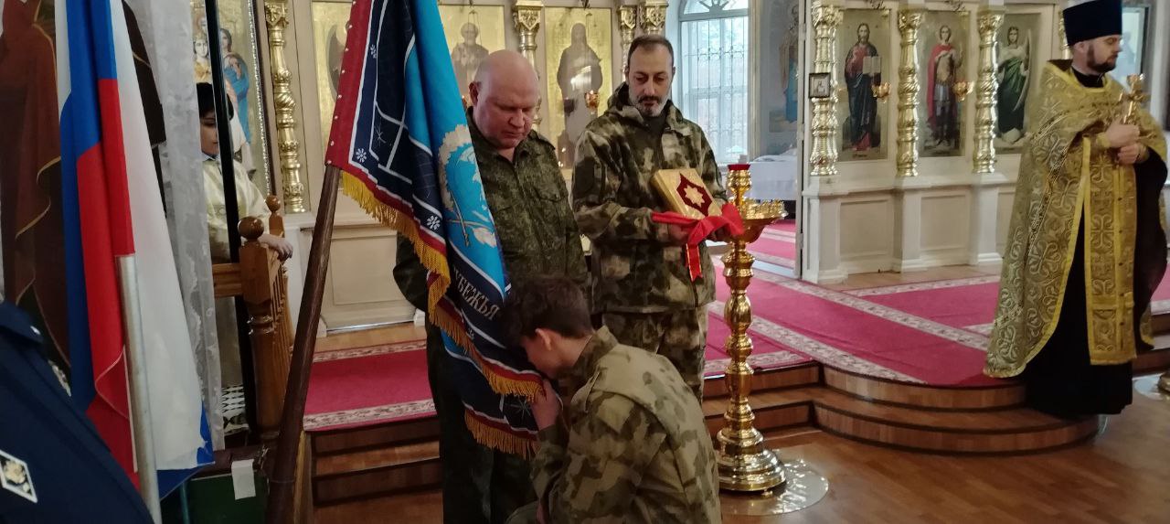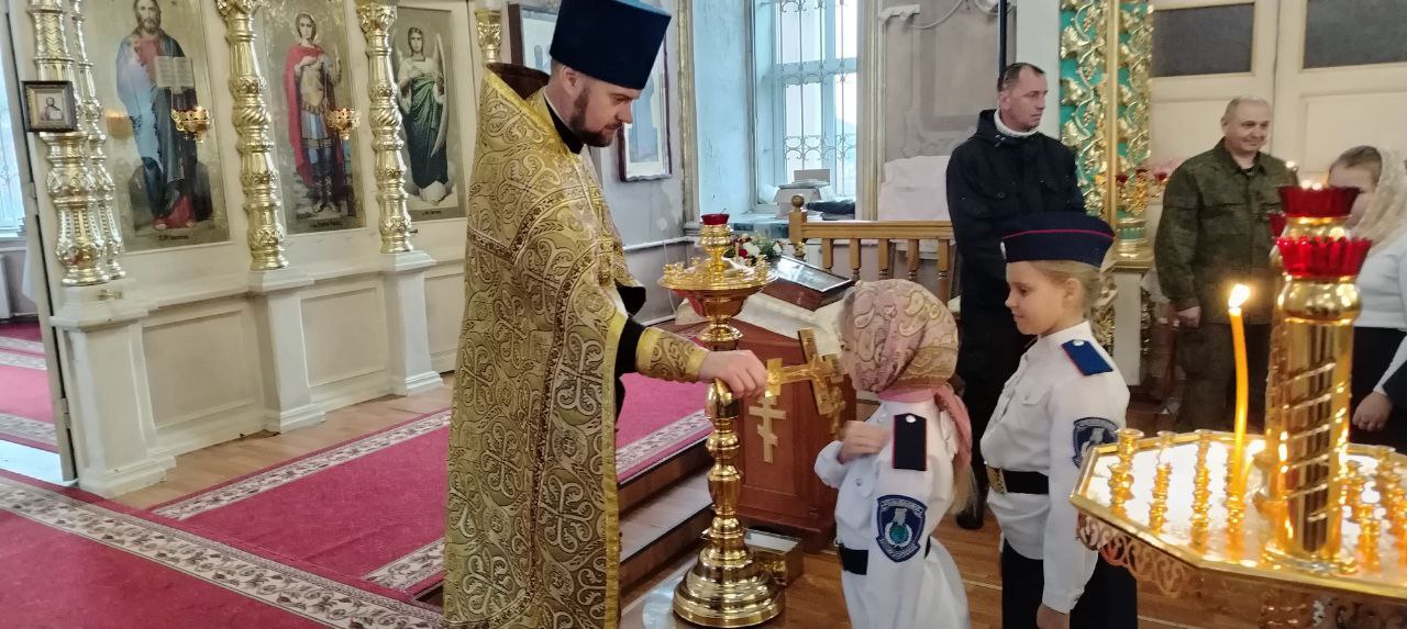 В канун престольного праздника, 15 ноября, в Георгиевском (Казачьем) храме г. Данкова состоялось ежегодное торжественное мероприятие, на которое, традиционно, со всей Липецкой области съехались казаки Регионального отделения «Союза Казаков-Воинов России и Зарубежья» в Липецкой области. В этот день приняли присягу казака «Всевеликого войска Донского» достигшие совершеннолетия представители регионального отделения. А самым волнительным и знаменательным событием этого ежегодного мероприятия стала присяга молодого казака и молодой казачки, которую приняли более 30 казачат – учащихся казачьих классов лицеев №4 и №6 Данкова и воспитанников Липецкой областной детско-молодежной общественной организации «Казачий военно-патриотический клуб «Донцы». На кресте и Евангелии, перед казачьими знаменами мальчики и девочки дали обещание хранить верность Святой Православной церкви, быть неизменно преданными своему Отечеству, Всевеликому войску Донскому, слушаться и почитать старших, добросовестно учиться, воспитывать в себе самые лучшие человеческие качества, стать надежной сменой донским казакам и казачкам. В этот волнительный момент казачат поддерживали их родители и педагоги. В начале торжественного мероприятия настоятель Георгиевского храма, руководитель отдела по взаимодействию с казачеством Елецкой епархии и духовник станицы «Данковская» протоиерей Валентин Бильчук провел молебен перед началом всякого доброго дела и благословил казаков и казачат на присягу. По окончании торжественной церемонии казаков и казачат поздравили отец Валентин, заместитель главы администрации Данковского муниципального округа Людмила Васильевна Чернышева и Атаман РО СКВРиЗ в Липецкой области Сергей Андреевич Гордеев. Завершил праздничную церемонию крестный ход вокруг Георгиевской церкви. А в завершение всего праздничного мероприятия казаки организовали для своих юных воспитанников чаепитие в воскресной школе при храме.