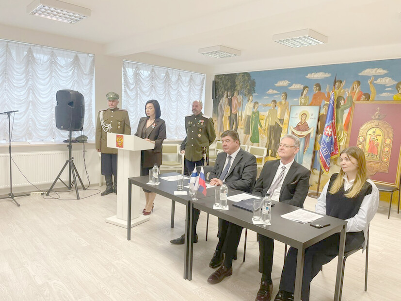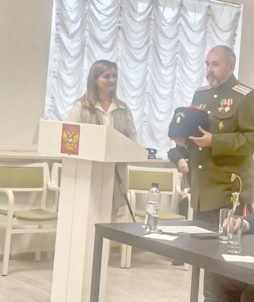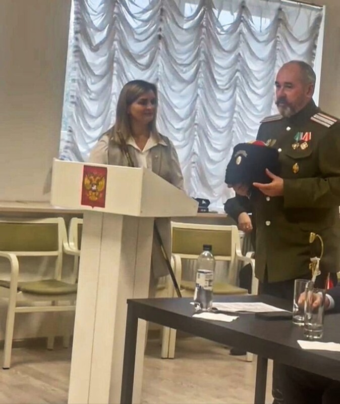 В ходе конференции атаман Шестаков А.К. передал в дар шашку и папаху конвоя Его Императорского величества – Барановой Веронике Владимировне для музея исторического клуба «Юный патриот» при школе посольства РФ в Финляндии.